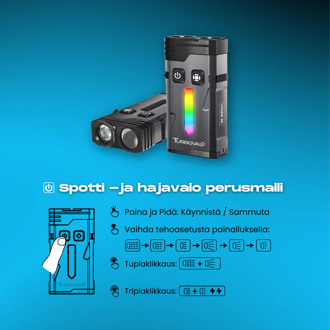 Ehdottomasti! Turbovalo on täydellinen apu myös työkalupakissa, retkillä, autossa tai hätätilanteissa. Monikäyttöisyytensä ansiosta se voi toimia myös varavalona esimerkiksi sähkökatkojen aikana tai pyörävalona hämärässä.